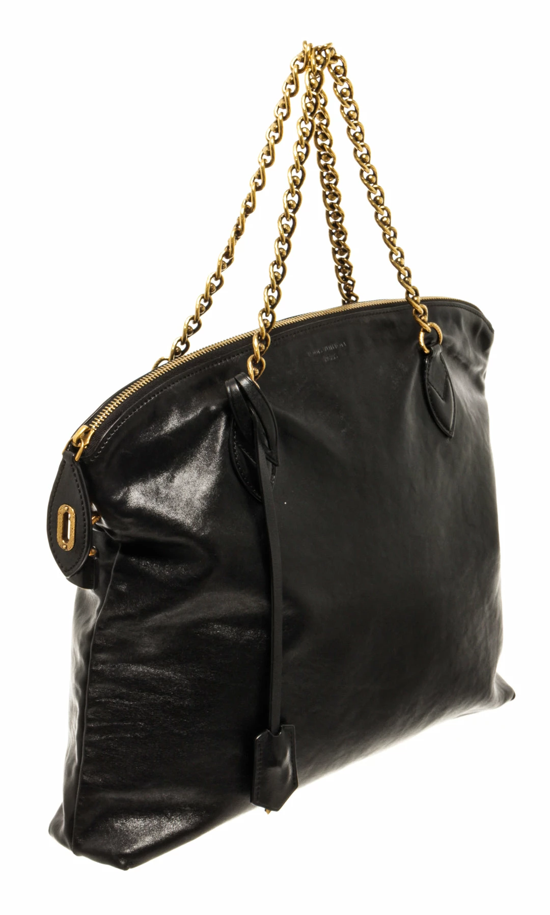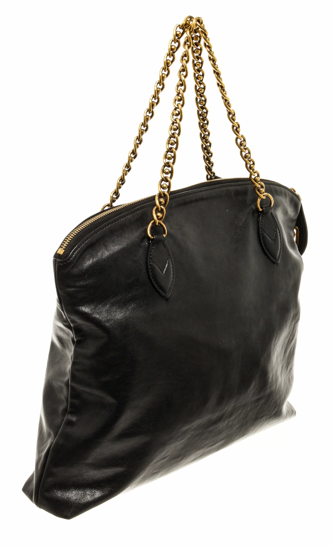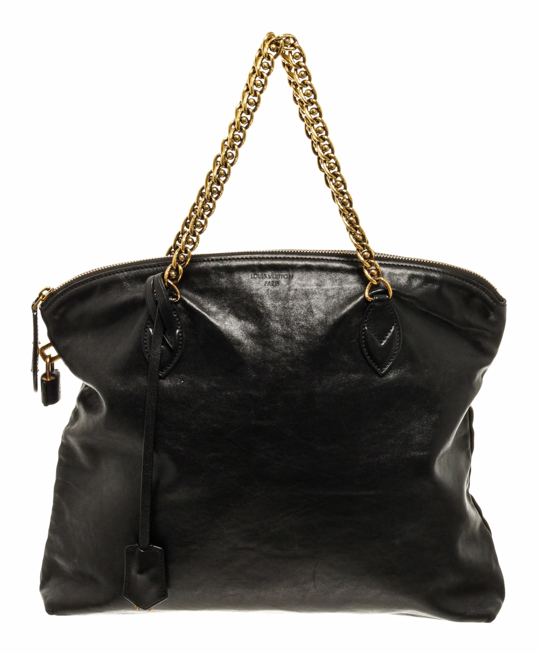 Louis Vuitton Black Leather Lockit Shoulder Bag with chain shoulder strap, lock & clochette, leather lining, gold tone hardware, zipper closure.