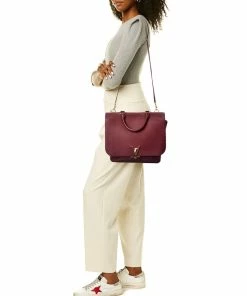 - Volta In Bordeaux Taurillon Leather With Canvas Lining And Silver-Tone Brass Hardware