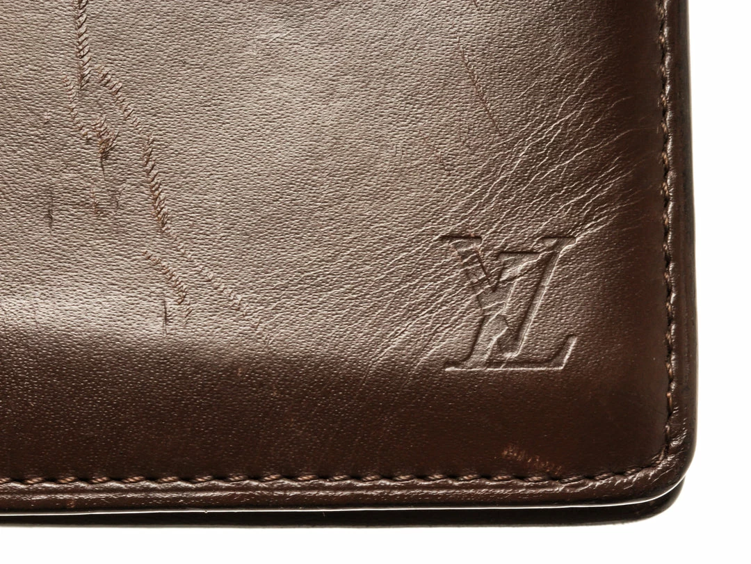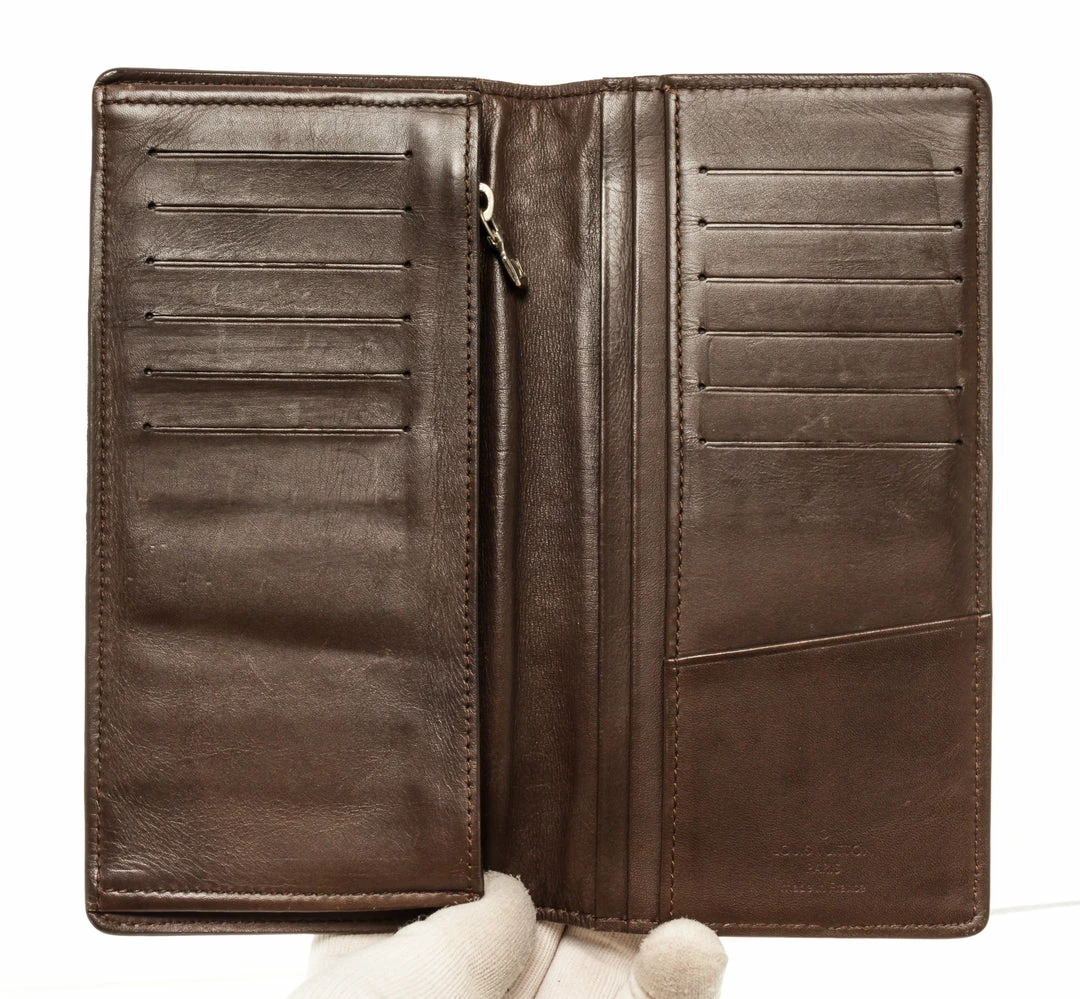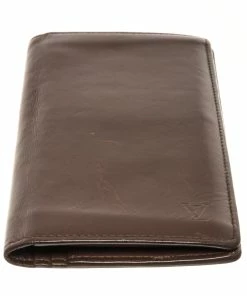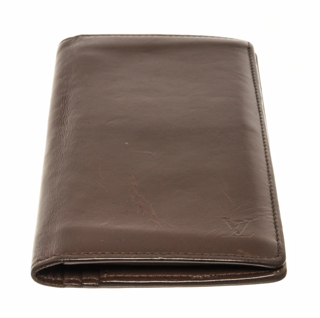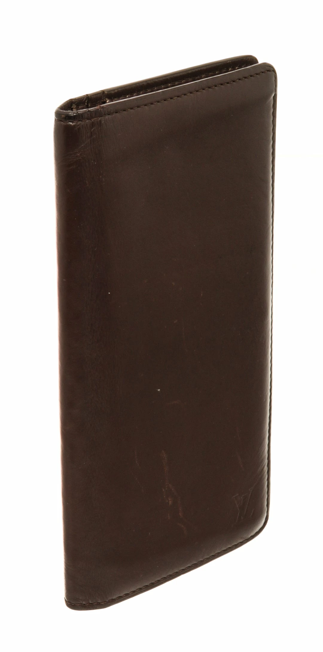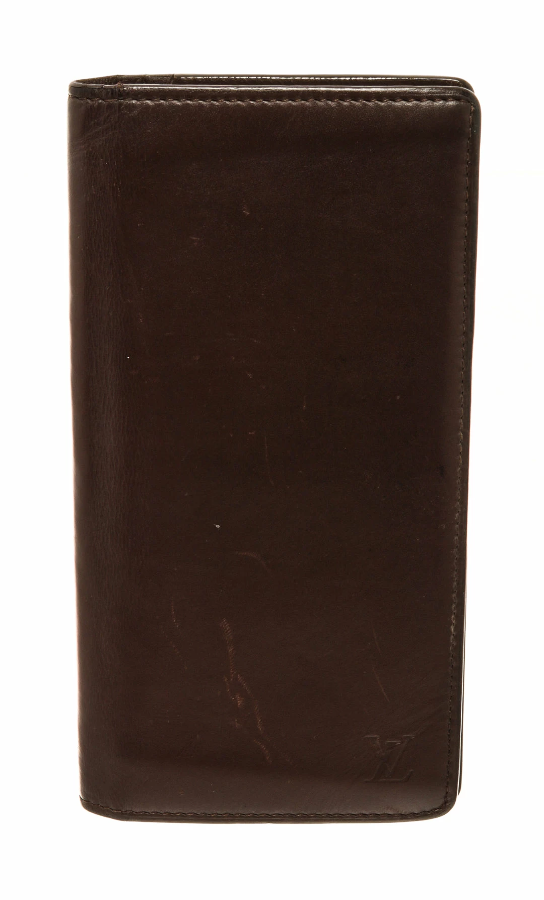 Louis Vuitton Brown Leather Brazza Wallet with gold-tone hardware, bifold closure.
