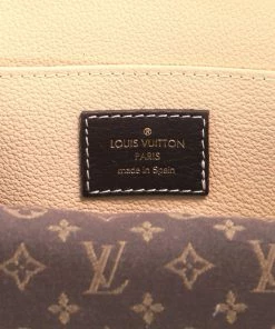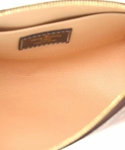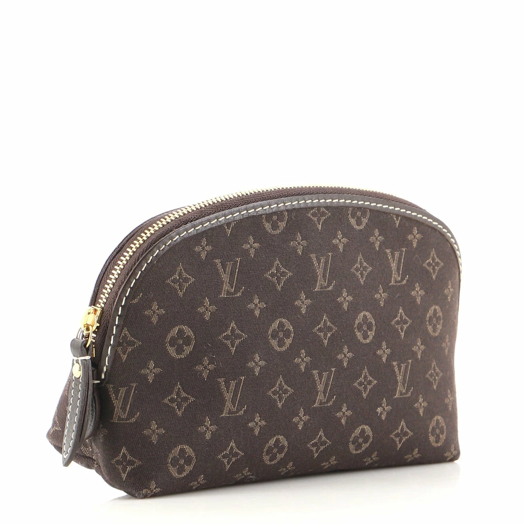 Louis Vuitton Brown Mini Lin Cosmetic Pouch with brown leather lining, beige leather interior lining, one interior pocket and overall zipper closure.