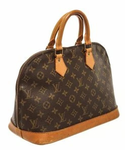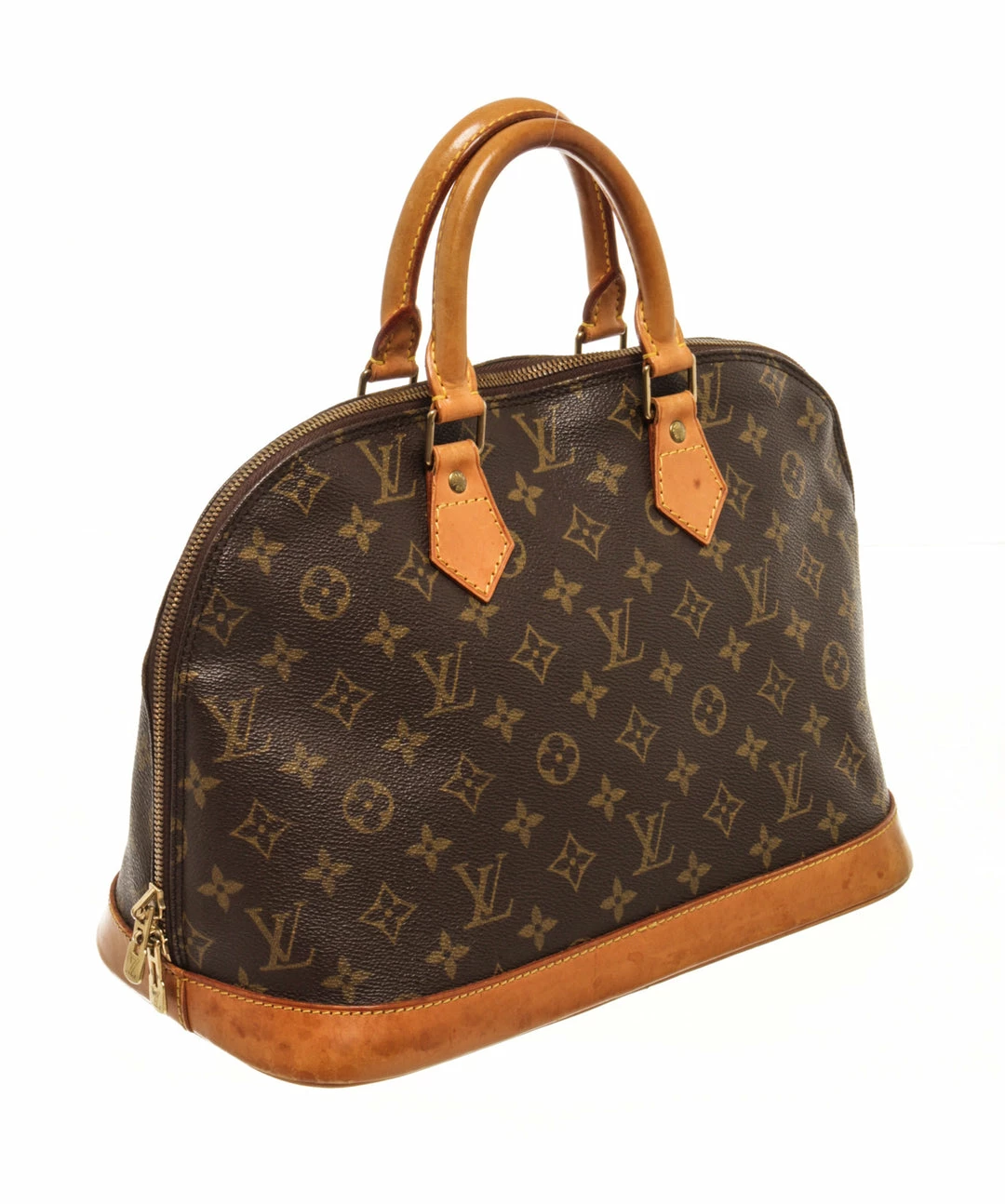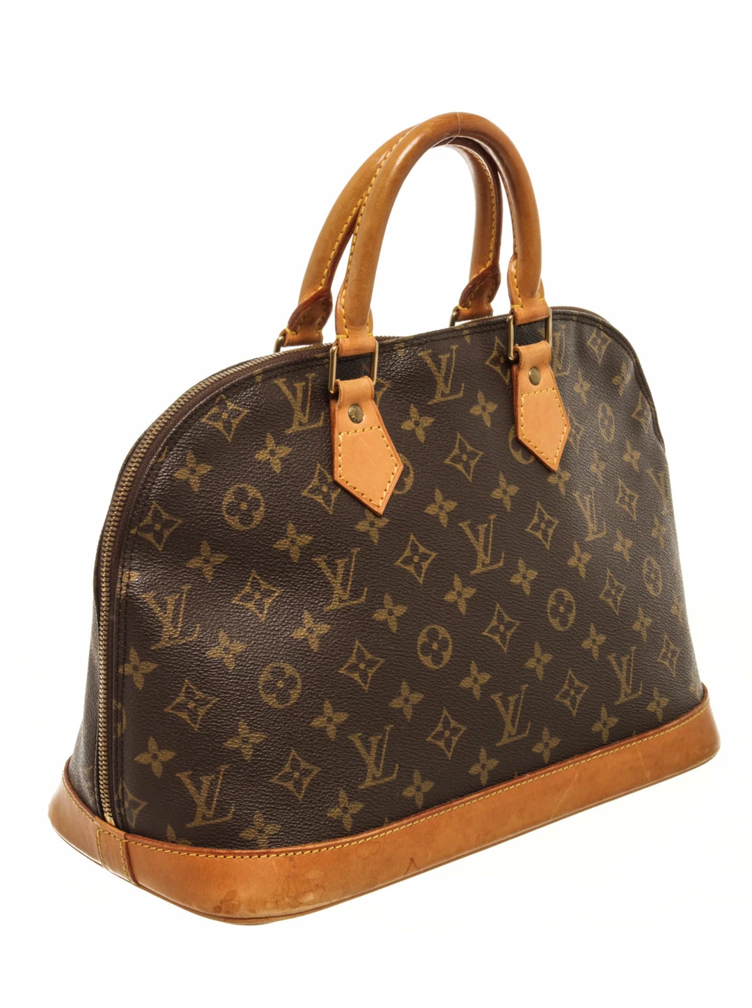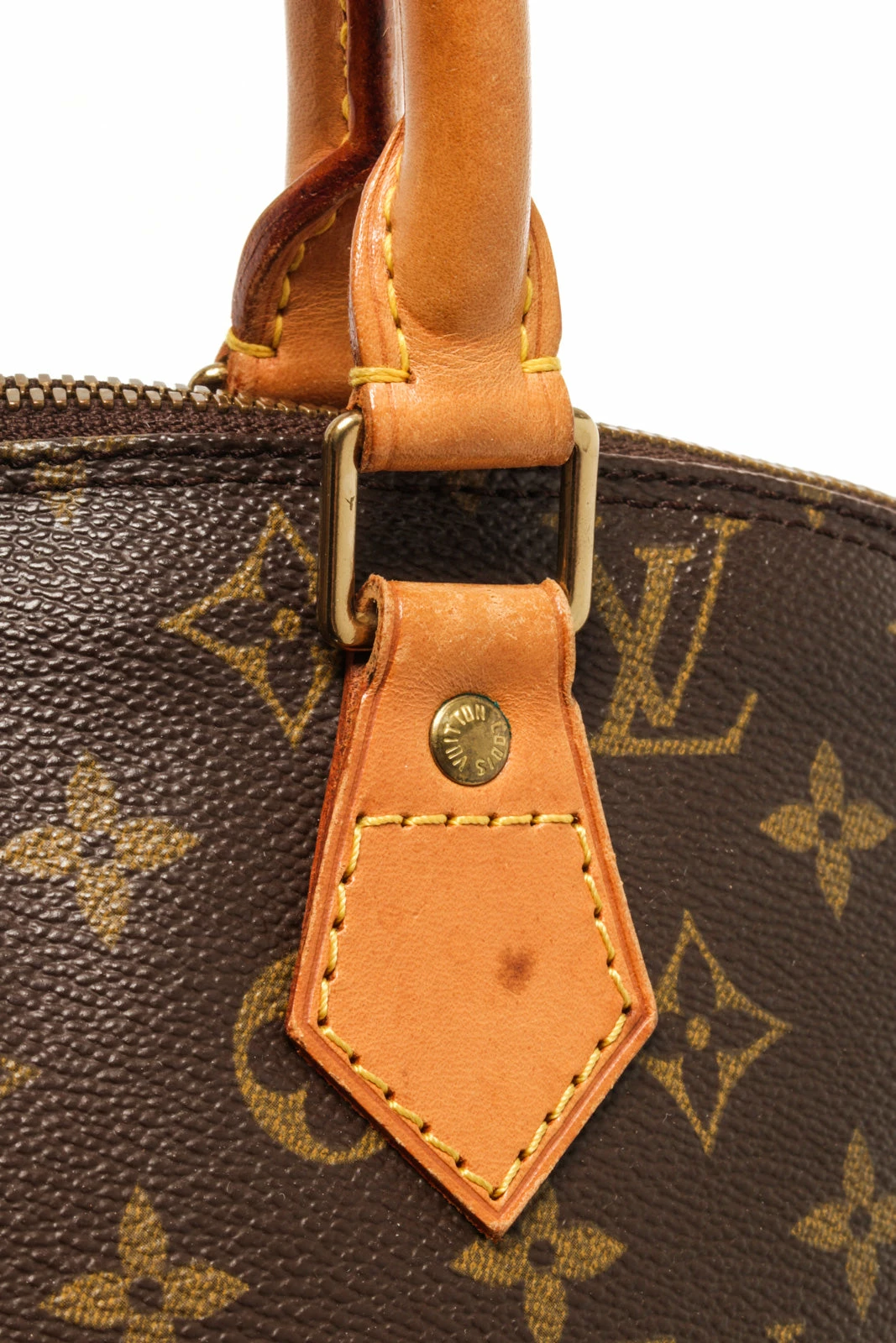 Louis Vuitton Brown Monogram Canvas Alma Shoulder Bag top handle, vachetta leather, canvas lining, interior slip pocket, gold tone hardware, zip closure.