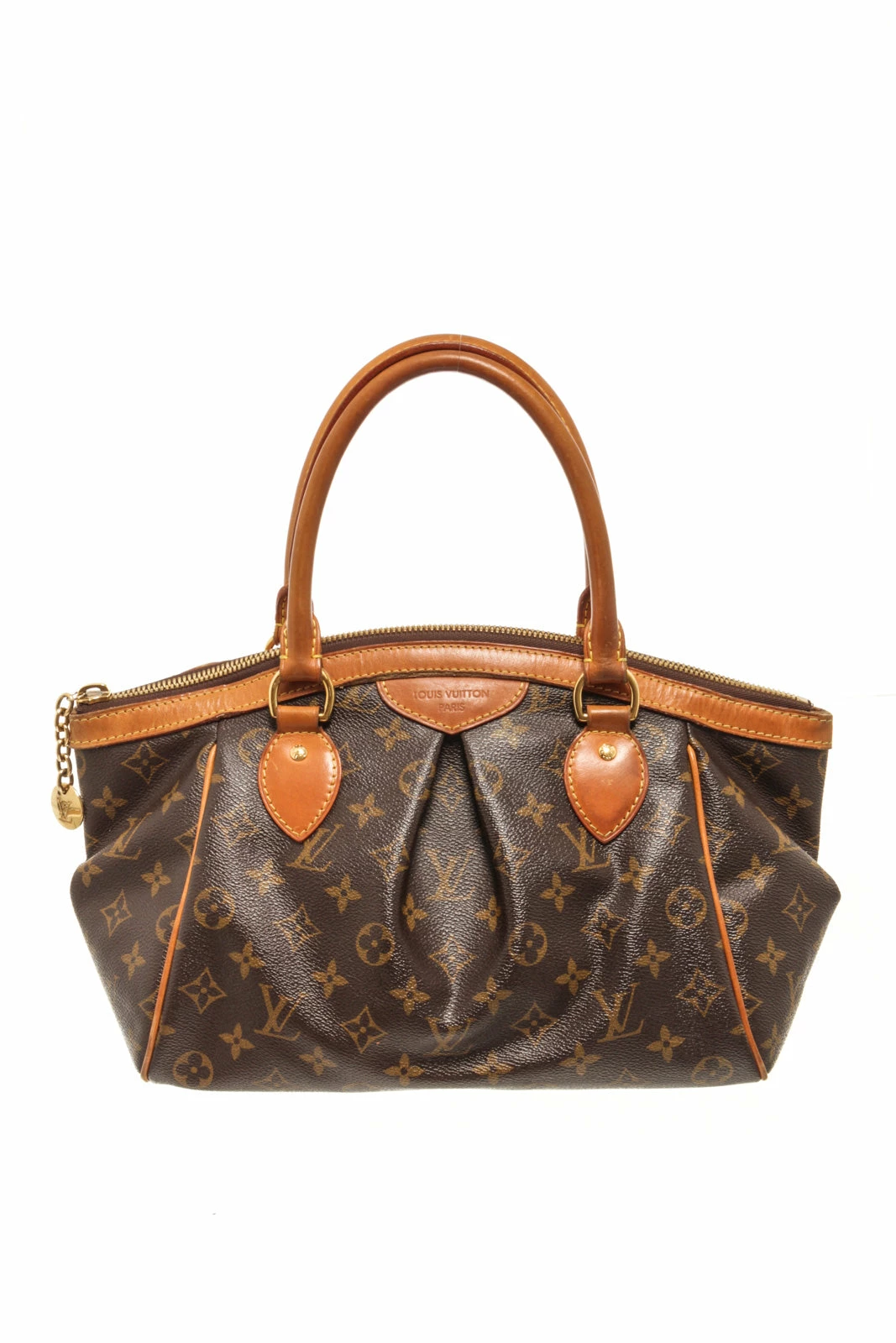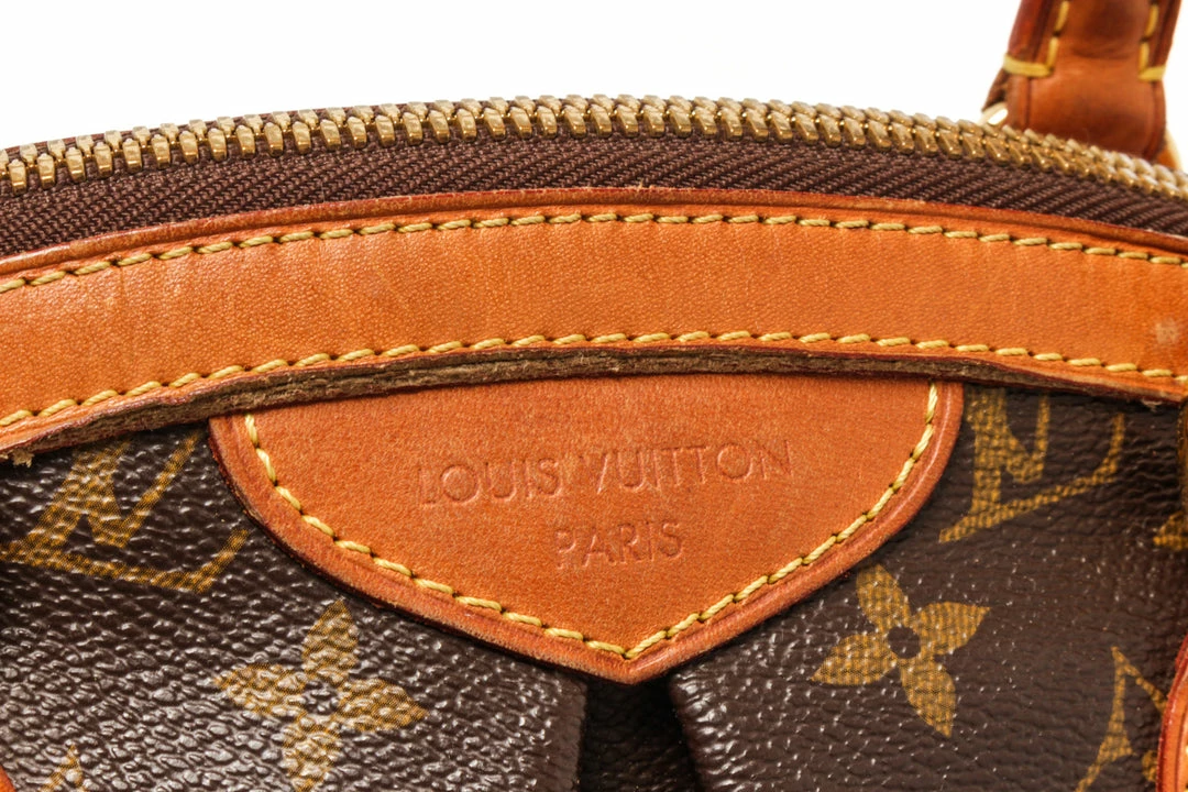 Louis Vuitton Brown Monogram Canvas Tivoli PM Tote bag with gold-tone hardware, two leather handles, sturdy metal feet, canvas lining,