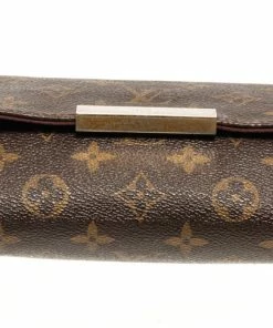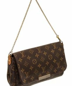 Louis Vuitton Favorite PM Brown Monogram Canvas Cross Body Bag with material Monogram Canvas, gold-toneย hardware, interior slip pocket, burgundy canvas lining, Removeable chain strap and long leather shoulder strap and flapย closure.