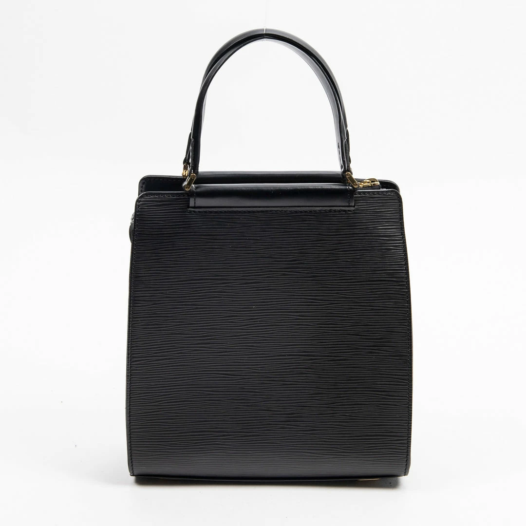 Louis Vuitton Handbag in Black Epi and Golden Brass hardware. Dimensions – 22*23*9cm. Serial number – FL0093 (Sep 2003). Inclusions – None.