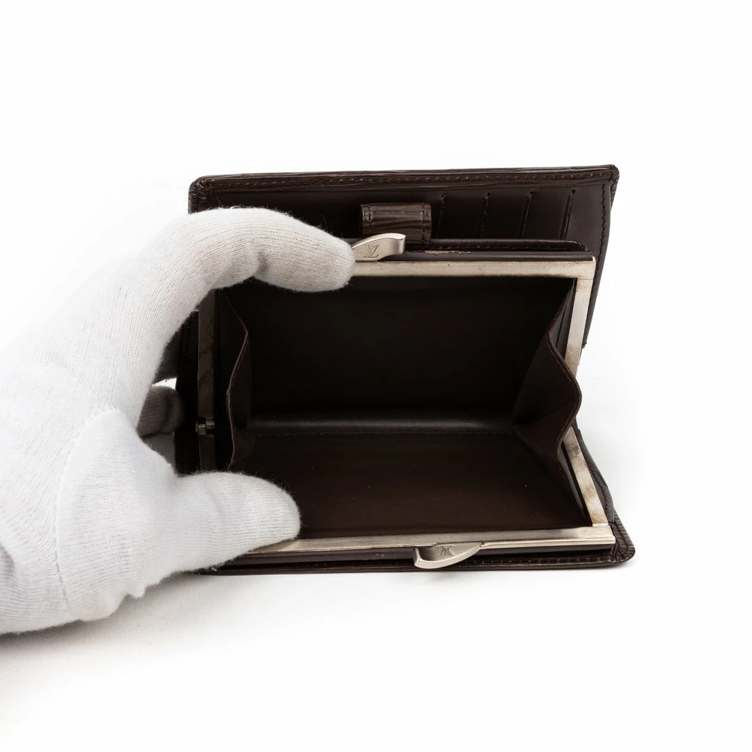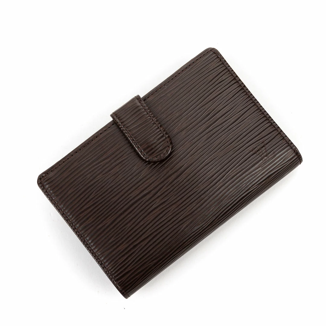 Louis Vuitton Wallet in Moka Epi and Silver Brass hardware. Dimensions – 13,5*9*3cm. Serial number – MI1004 (October 2004). Inclusions – Box, Dustbag.