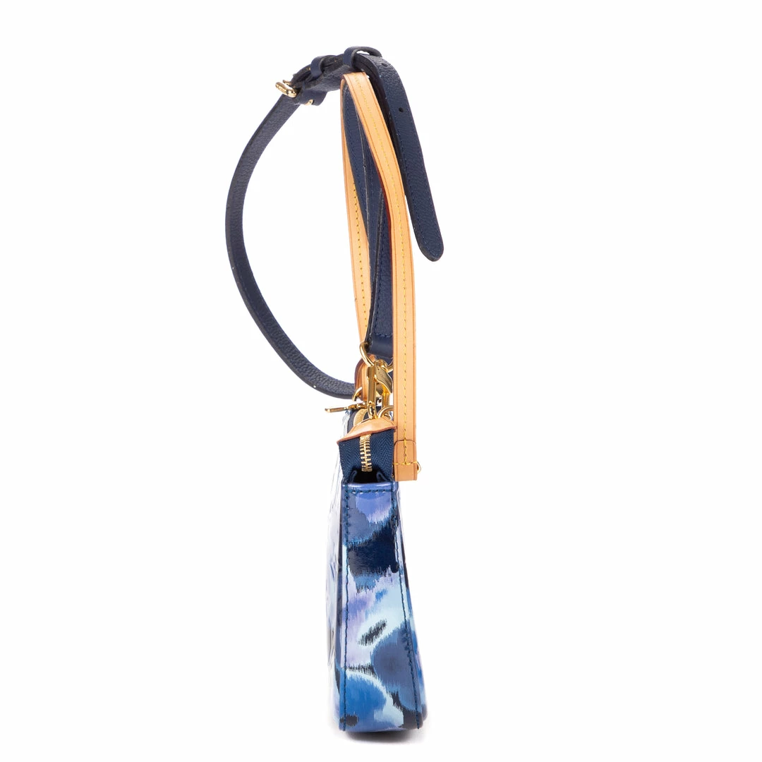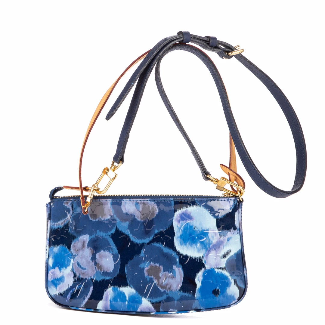 Louis Vuitton Handbag in Blue Blue Patent Embossed Leather and Golden Brass hardware. Dimensions – 23*14*4cm. Serial number – DR1103. Inclusions – N/A.