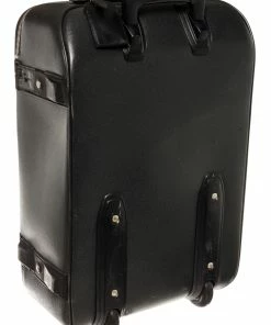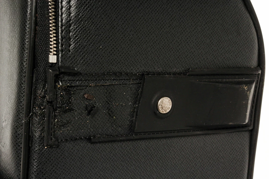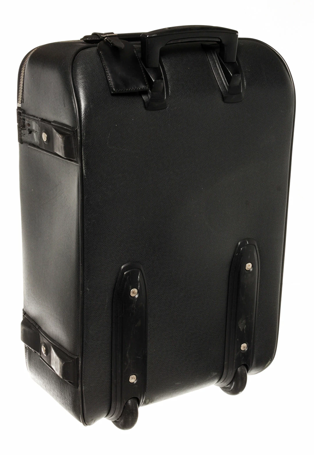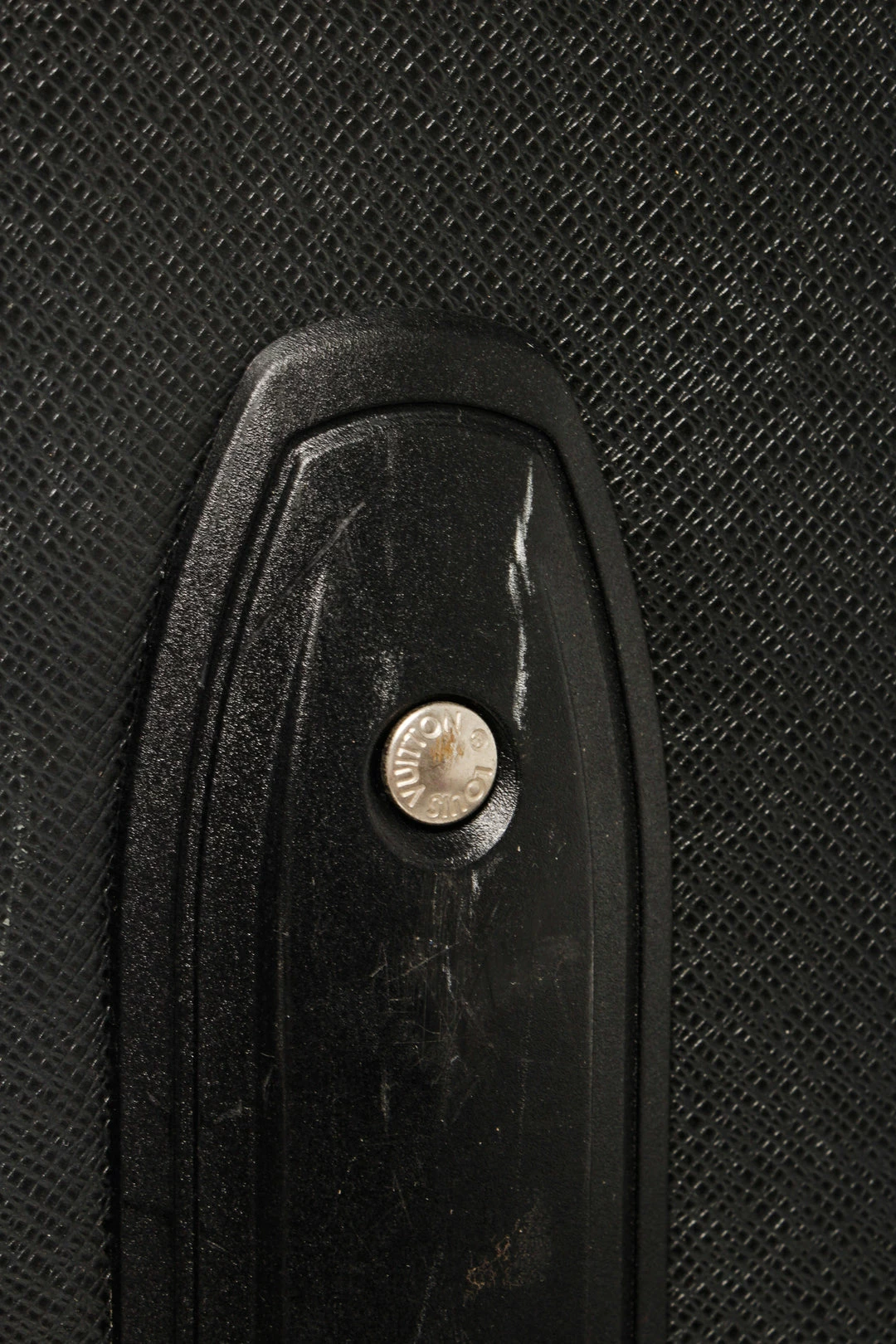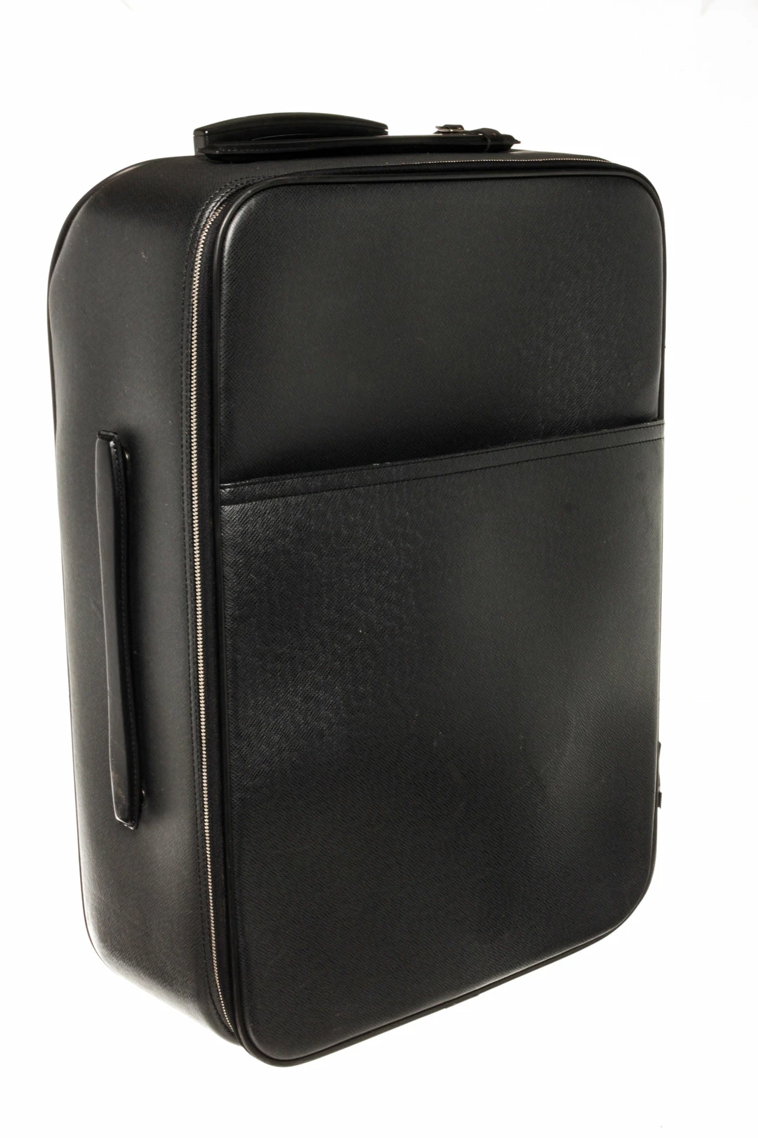 Louis Vuitton Pegase 60cm Black Taiga Leather. Features gold hardware, one interior pocket, black taiga leather exterior, and a silver zipper closure.