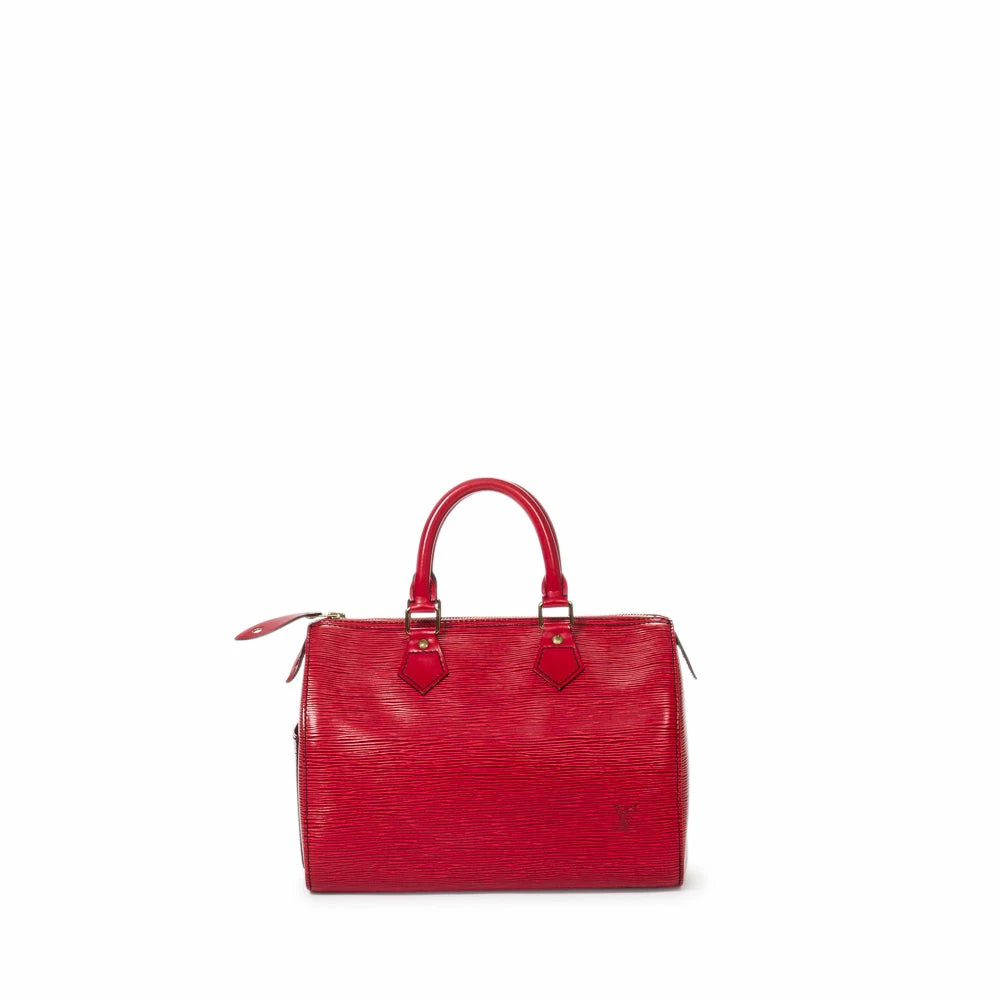 Louis Vuitton Travel Bag in Red Epi and Golden Brass hardware. Dimensions – 27*19*15cm. Serial number – N/A. Inclusions – N/A.