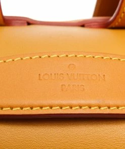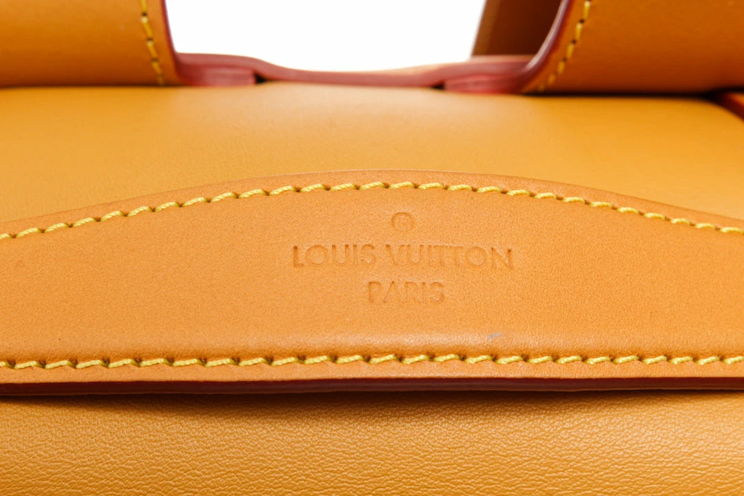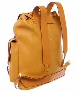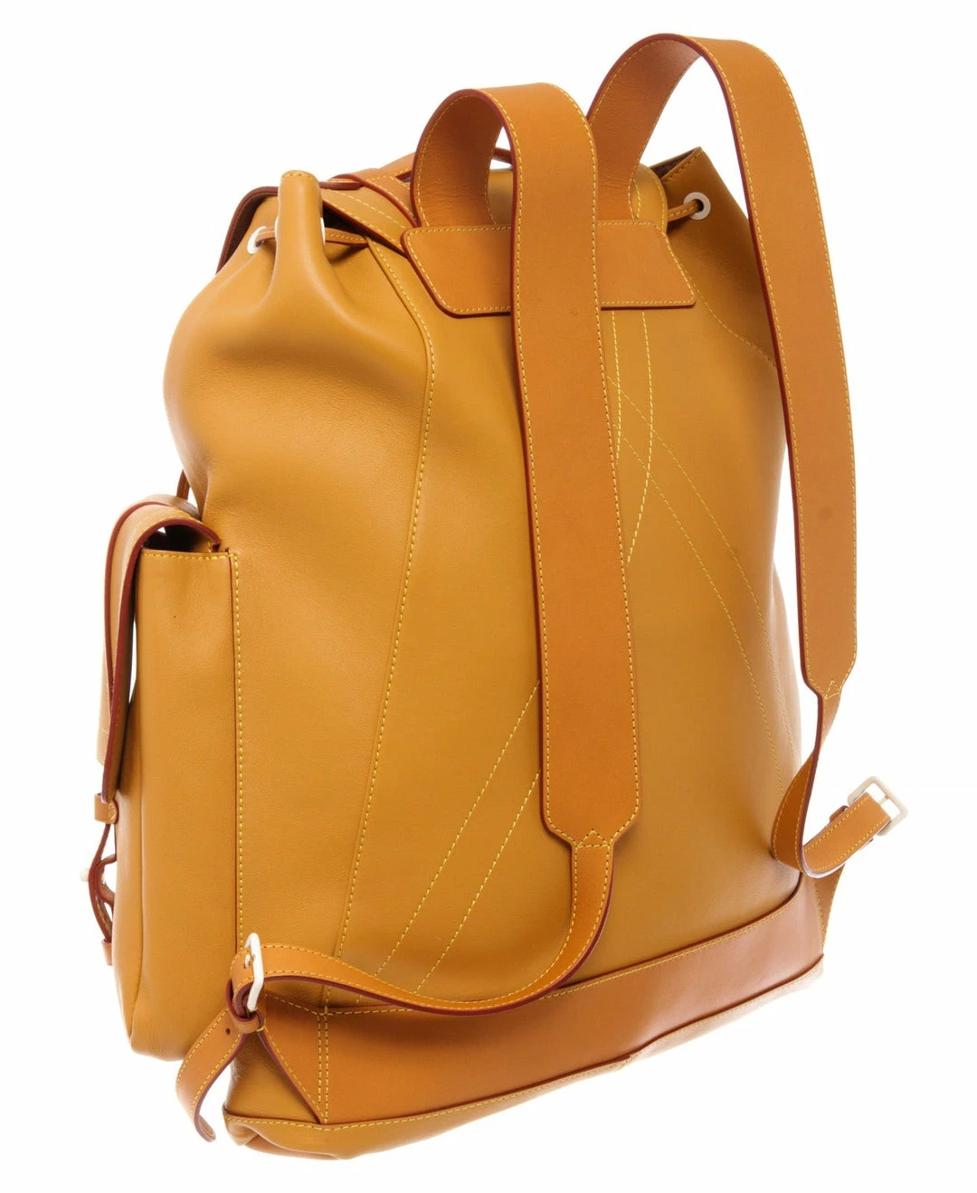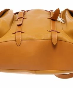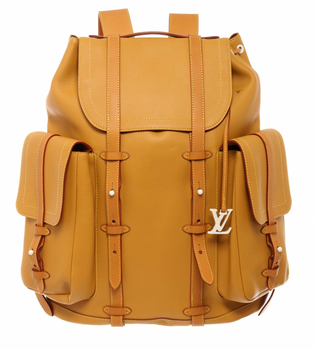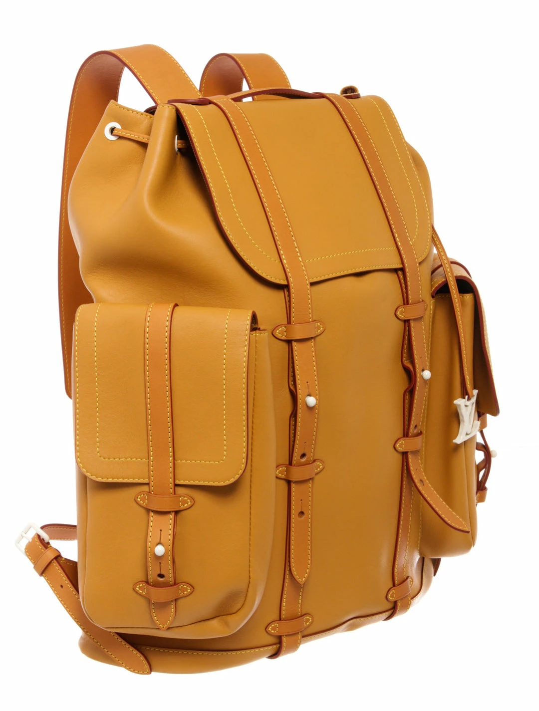 Brown Vachetta tan Louis Vuitton Christopher Backpack with silver-tone hardware, trim tan vachetta leather, exterior slip pocket, shoulder strap, and flap closure.