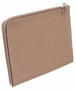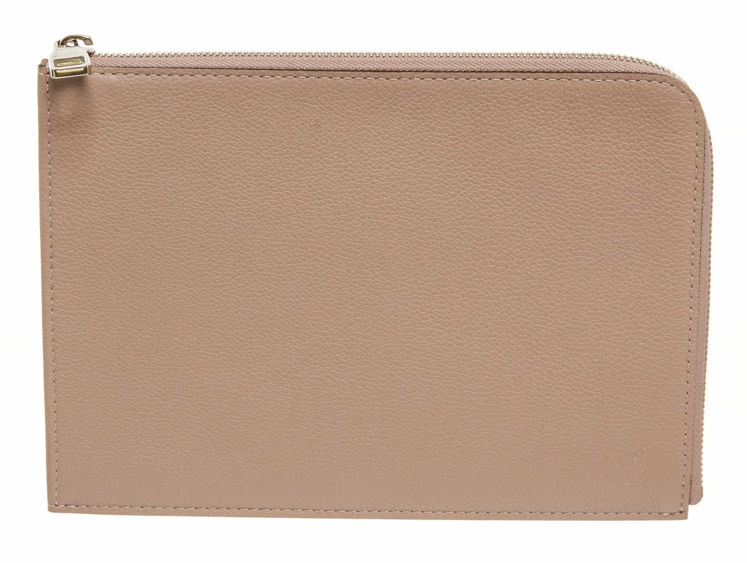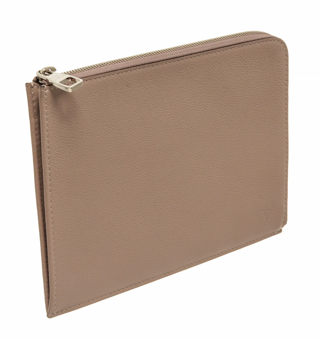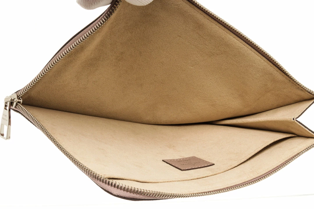 Louis Vuitton Taupe Leather Pochette Jour Clutch with exterior color neutral, exterior material leather, interior material microfiber, hardware color silver,