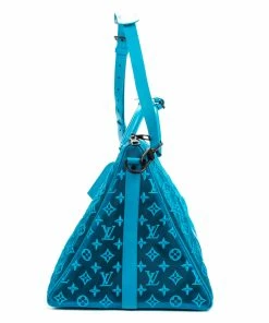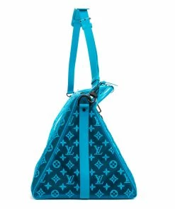 Louis Vuitton Travel Bag in Blue Monogram Seethrough Mesh and Cowhide-leather trim and Matt black metal hardware. Dimensions – 50*29*23cm. Serial number – DR0250. Inclusions – Dustbag, Keys, Cadenas, tag, h,le holder.