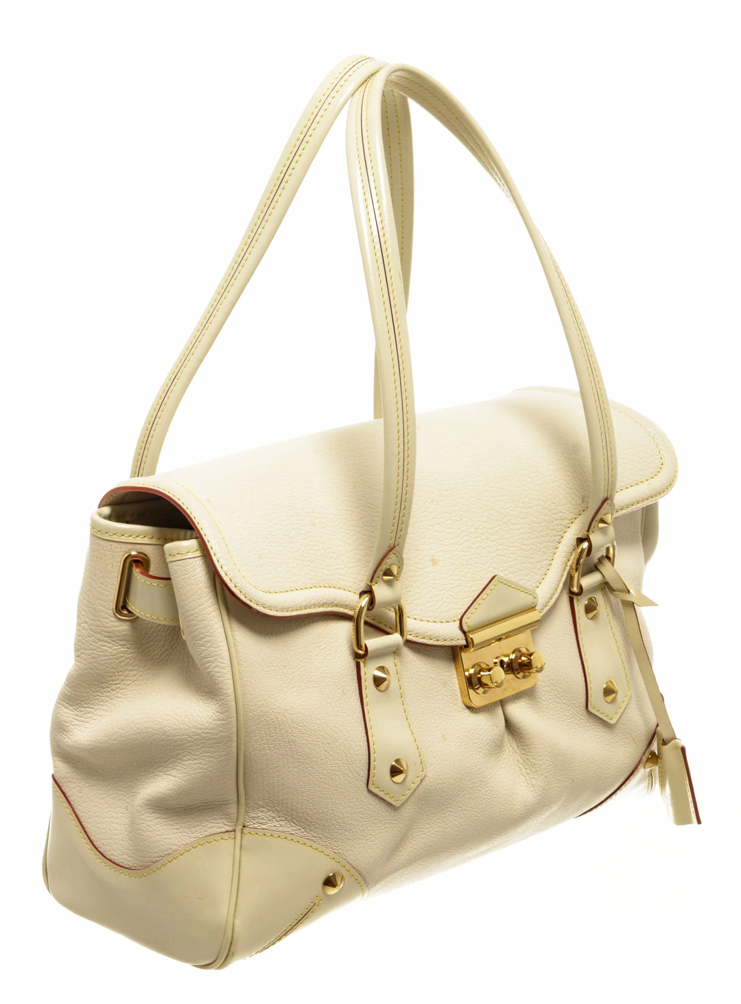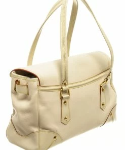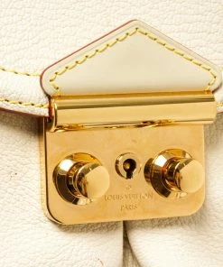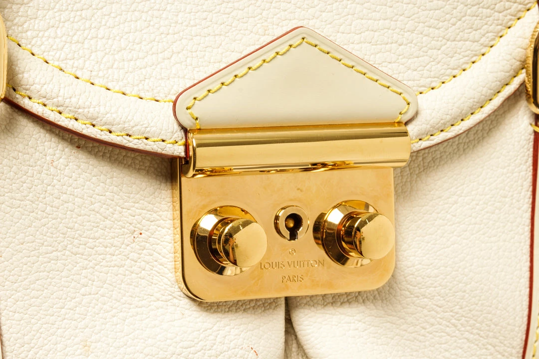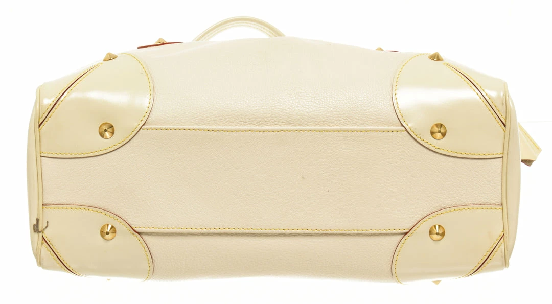 Louis Vuitton White Leather Le Absolu Handbag with top handle, fabric lining, gold tone hardware, snap closure.