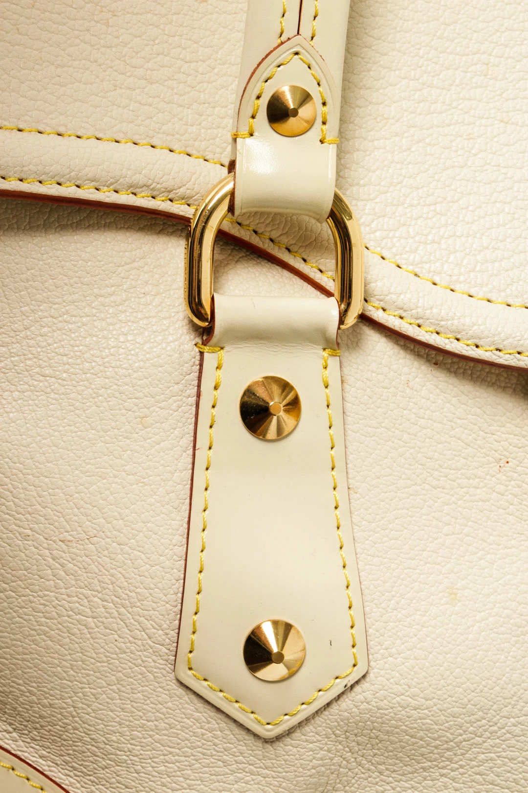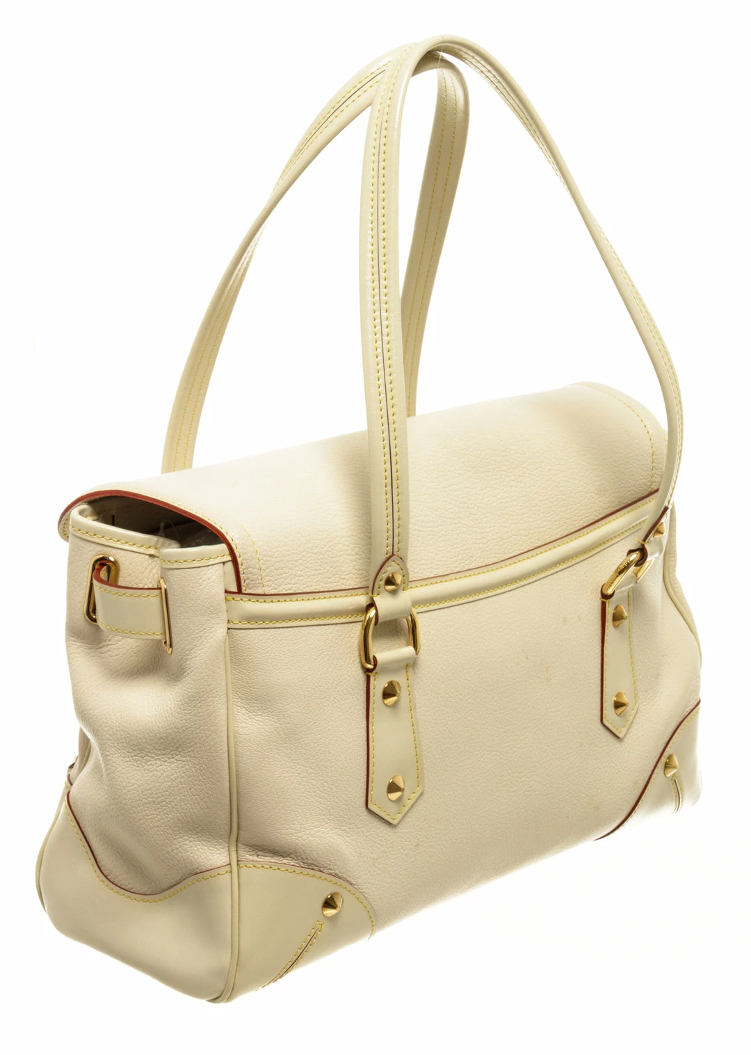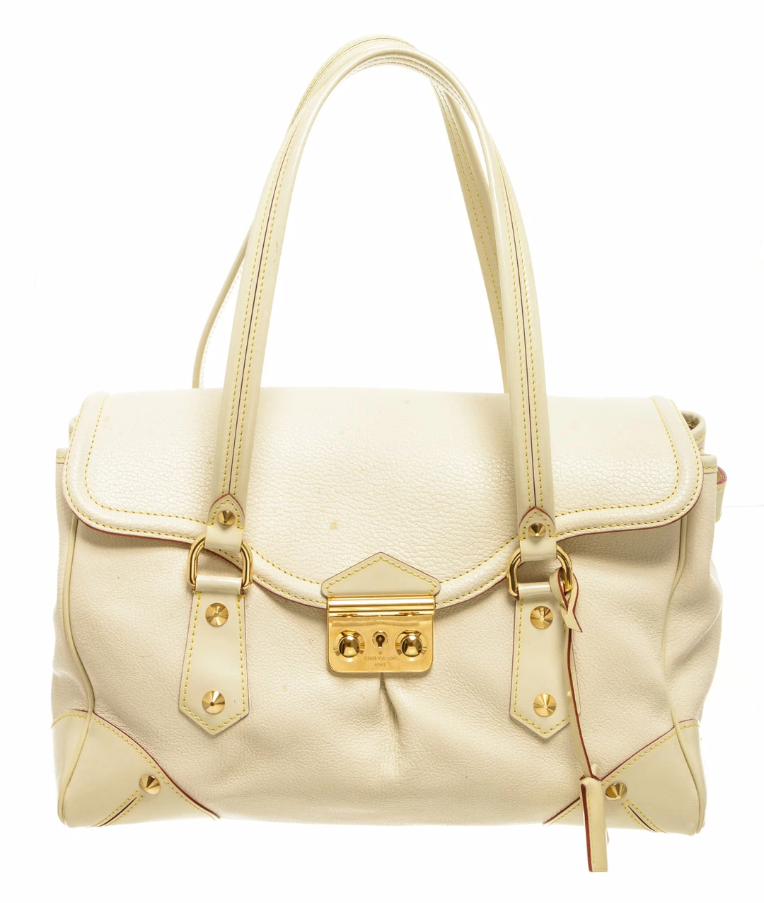 Louis Vuitton White Leather Le Absolu Handbag with top handle, fabric lining, gold tone hardware, snap closure.